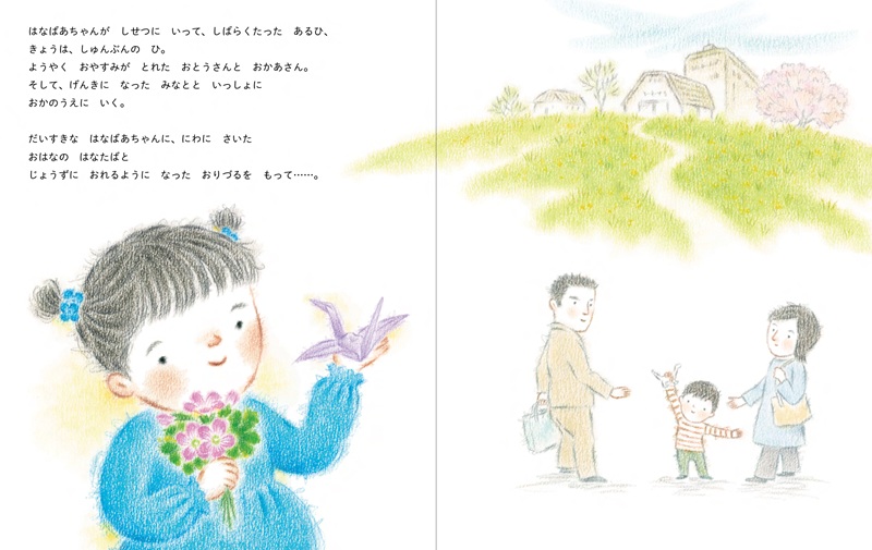 りおの大好きな、90歳のひいおばあちゃん。 「おばあちゃんはぼけてる」ってみんなは言うけれど今でも「おりがみ」はとっても上手。 りおの宝物は、はなおばあちゃんが折ってくれた「おりがみ」なんだ!